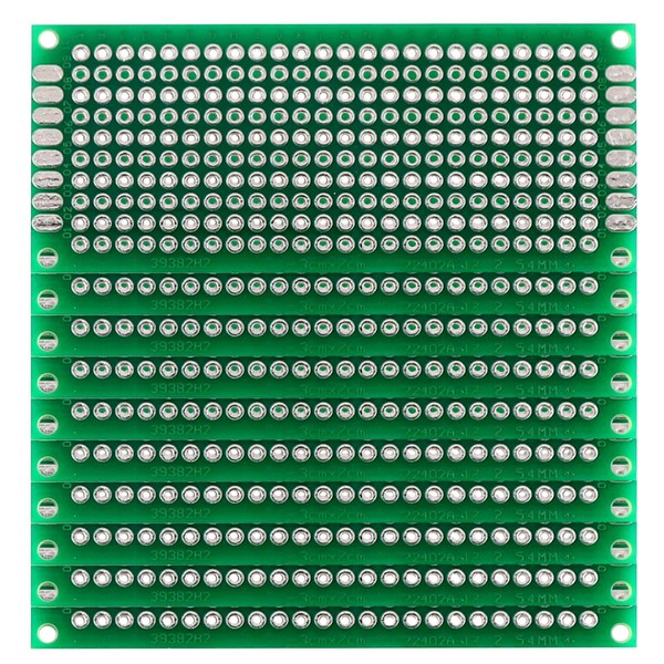 - ♚ 10pcs double sided solderable PCB prototype board, enables you to transfer your circuit and wires from a plug-in breadboard without recutting wires or changing your layout, for Arduino kits, electronic experiments and DIY projects.