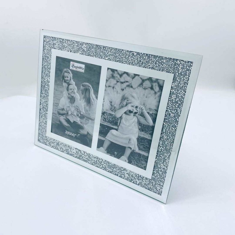 EagleWiz GLASS MIRRORED CRUSHED CRYSTAL DIAMOND,DOUBLE PHOTO FRAME,TWO PHOTOS SILVER