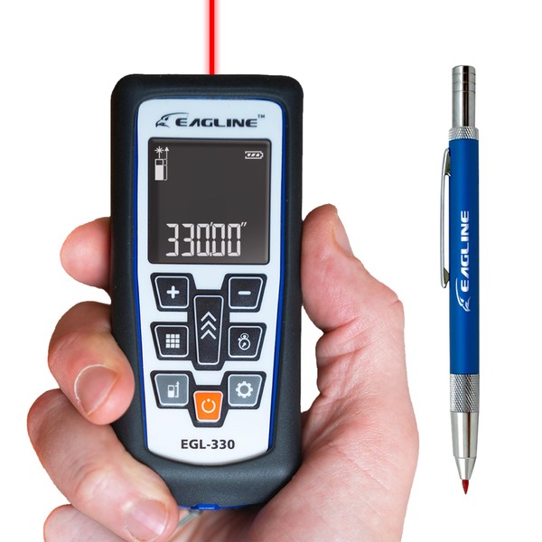 EAGLINE EGL330 Laser Distance Measure - 330Ft Range, 3-Point Height & Width, Area & Volume Measures - Laser Meter Measurement Tool with Bonus: Protective Cover & Carpenter Pencil