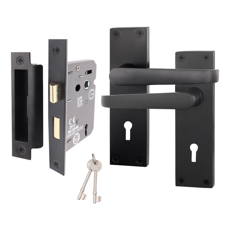 - EASY INSTALLATION: Installing our door handles is a breeze, thanks to the included hardware (1 x pair of keyhole lock door handles with matching screws, 1 x sashlock 64mm case/44mm backset and matching keep.) It’s a DIY-friendly solution that saves you time & hassle.
