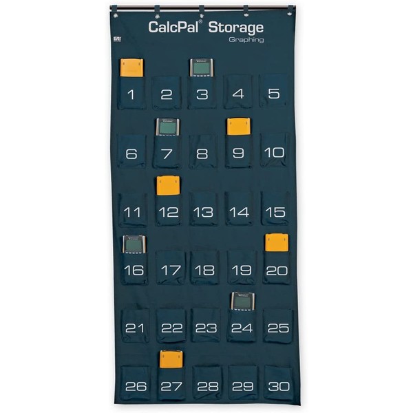 EAI Education CalcPal Calculator and Cell Phone Storage Pocket Chart | 30 Numbered Pockets, Durable Nylon Canvas - Graphing