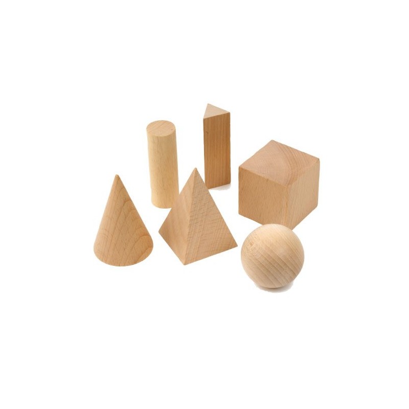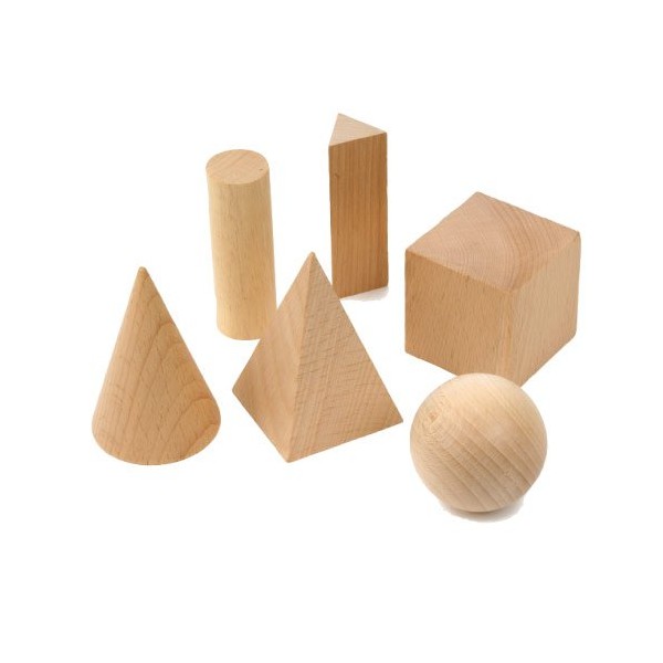 - Understand the basics with these six wooden shapes: cube, cylinder, sphere, cone, triangular prism, and pyramid.