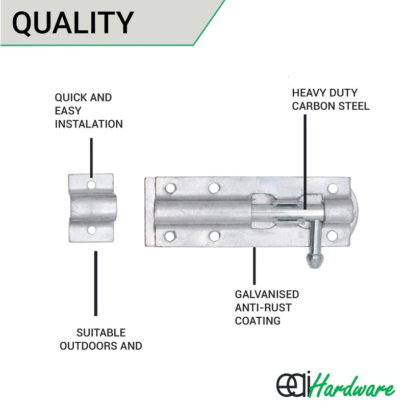 EAI Heavy Duty Tower Bolt | 4 Inch | Galvanised | Fixings Included | Pack of 2