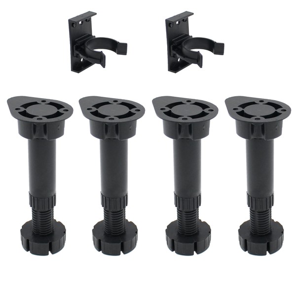 EAI Kitchen Unit Cabinet Legs | Adjustable Height 150mm to 180mm | Black Plastic | Includes Plinth Clips – 16 Pack