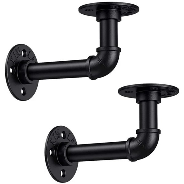 EAI Pipe Shelf Brackets | Matt Black | Cast Iron Scaffold Type | Pack of 2 Brackets | Dual Bracket Length 100/160mm