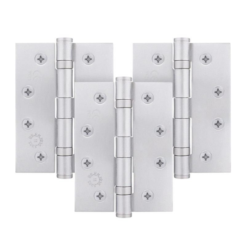 EAI Satin Door Hinges | 4 Inch / 102mm Satin Chrome Internal Fire Door Hinges | 1.5 Pairs