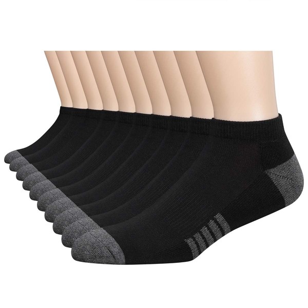 eallco Mens Ankle Socks Low Cut Athletic Cushioned Running Tab Socks 10 Pairs Black (Fits Mens Shoe Size 6-12)