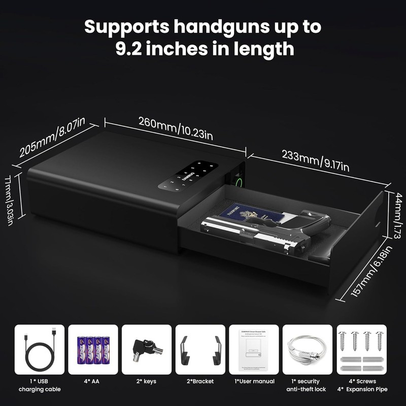 - 【Advanced Biometrics Technology】: The pistol safe utilizes the most advanced 650 DPI semiconductor biometric fingerprint sensor. It can accurately distinguish fingerprints of all ages. Quick access within 0.5S. The bedside gun safe can hold up to 50 fingerprints.