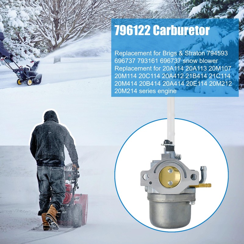 Eamonhigh 794593 Carburetor Replacement for BS 796122 696737 793161 Snowblower, Carb Kit Replacement for Cub Cadt Snowthrower Tractor 20A114 20A113 20M107 20M114 20C114 Series Engines