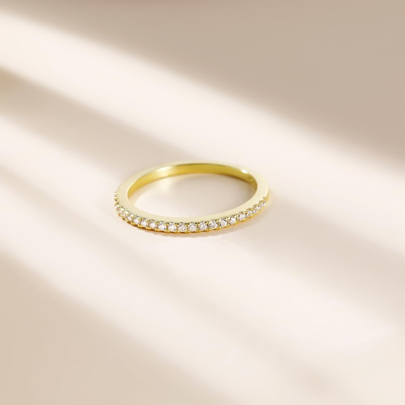EAMTI 1.5mm Gold Plated Eternity Bands for Women 925 Sterling Silver Half Eternity Stackable CZ Engagement Ring for Women Size 9