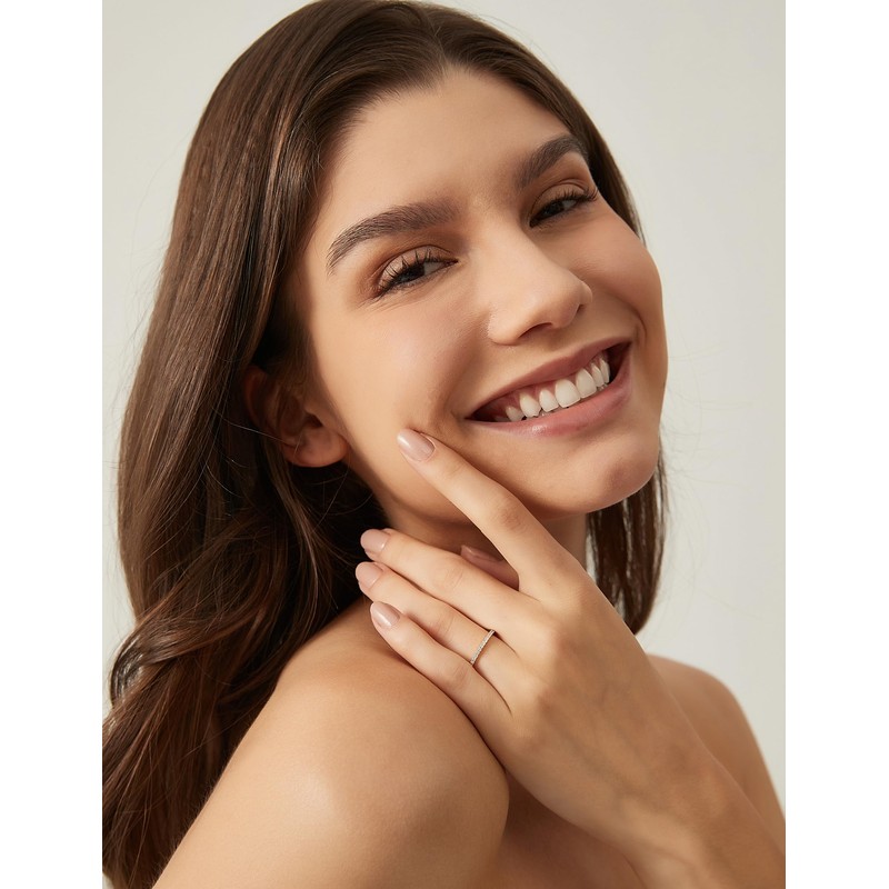 - ♥ Perfect for Stacking ♥ The slim profile of the 1.17mm eternity band ring allows for seamless stacking with other rings, including wedding bands. Whether as a standalone statement or part of a stacked ensemble, it complements and accentuates other rings beautifully