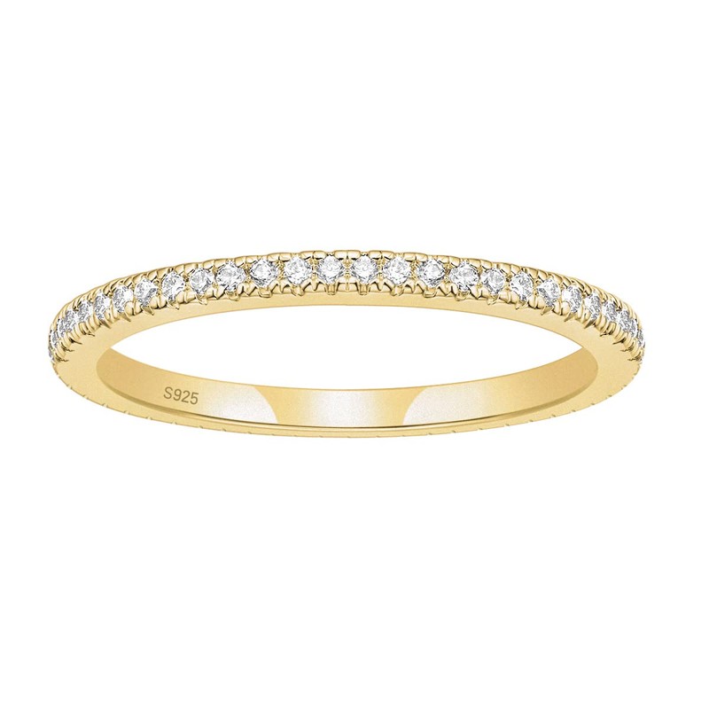 EAMTI 2mm 925 Sterling Silver Wedding Band Yellow Gold Round Cubic Zirconia Full Eternity Stackable Engagement Ring for Women Size 7
