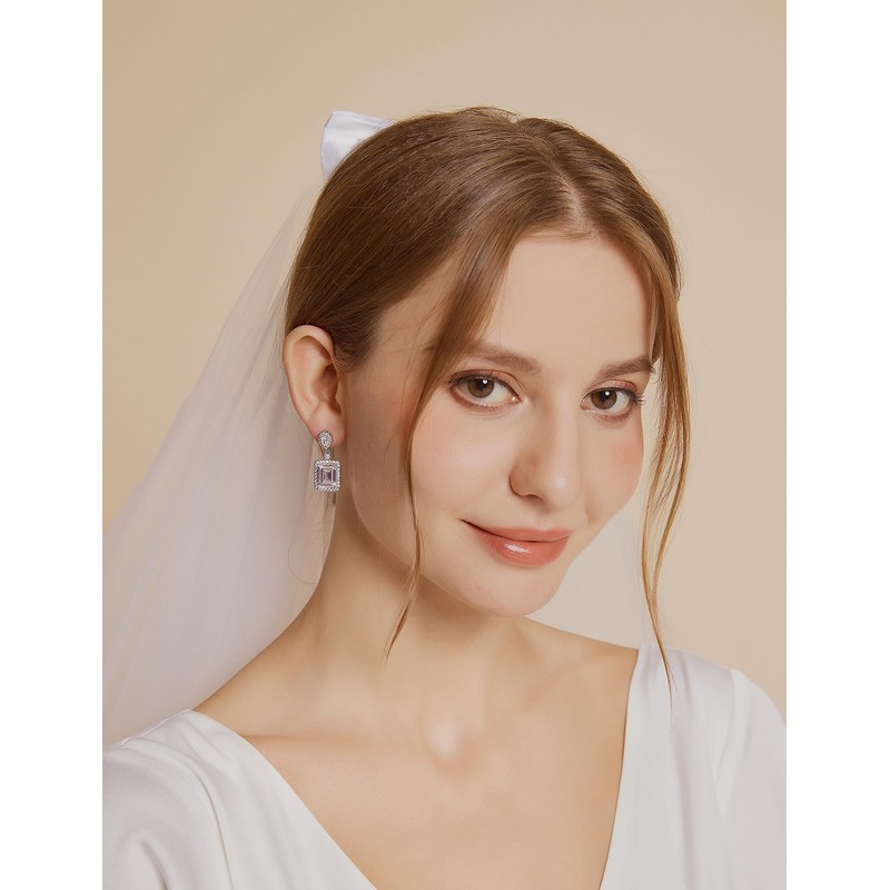 - ♥ Material ♥This a pair of silver dangle earrings for women that feature cubic zirconia stones cut in an emerald shape. The earrings are specifically designed for bridal and wedding events, and feature 925 sterling silver posts, which indicate that they are made of high-quality, genuine silver
