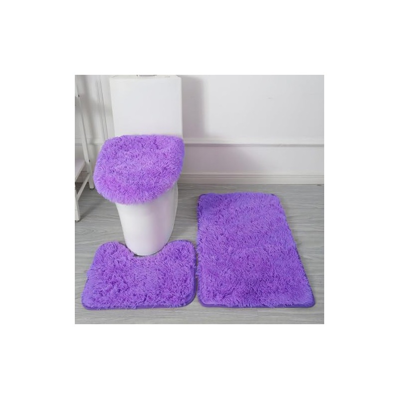 Eanpet Shaggy Bathroom Rugs Sets 3Piece Purple Bath Mat for Bathroom Non-Slip Bathroom Mats Water Absorbent Bath Rug Floor Mats Soft Washable Shower Rug with U-Shaped Contour Rug Toilet Lid Cover