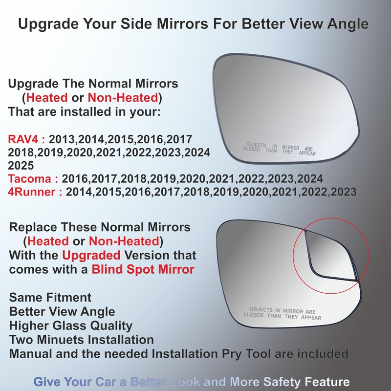 EAP Pair of Passenger & Driver Side Mirror Glasses Compatible with Toyota RAV4 2013-2025, 4runner 2014-2024, Tacoma 2016-2023, Heated with Spotter 879310R200 8793142D40 8793142D50 879310R210 TO1325174