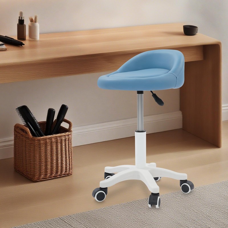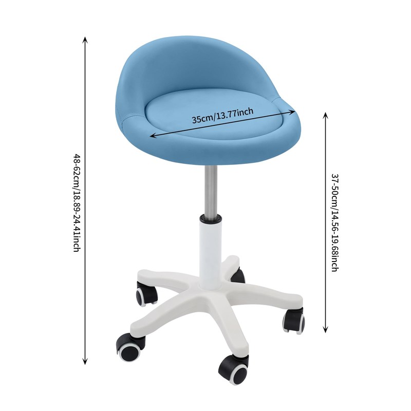 • 【Ergonomic Support】: The curved backrest and 13.78-inch-wide round seat cushion are ergonomically designed to support the hips and waist, ensuring comfort during long beauty treatments or office work. The high-density 1.97-inch sponge filling enhances relaxation, making this rolling chair ideal for hairstylists, estheticians, and massage therapists.