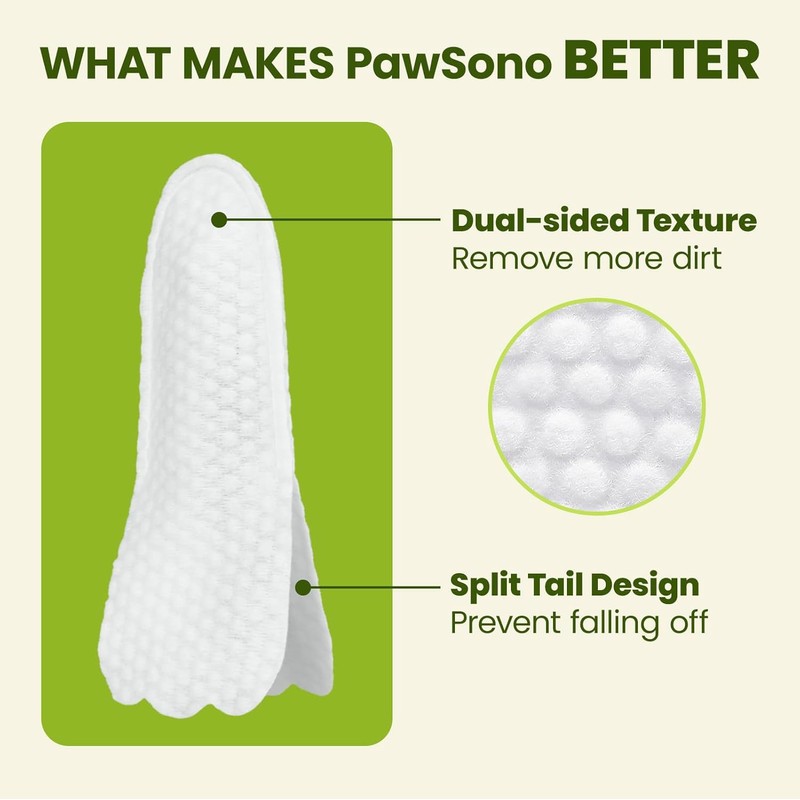 - 【Extra Larger & Thicker】PawSono cat ear wipes custom-sized for the US market. Our pet ear wipes new size eliminates the need to worry about fingers being big to wear them, and eliminates the concern about dog ear wipes finger slipping off.