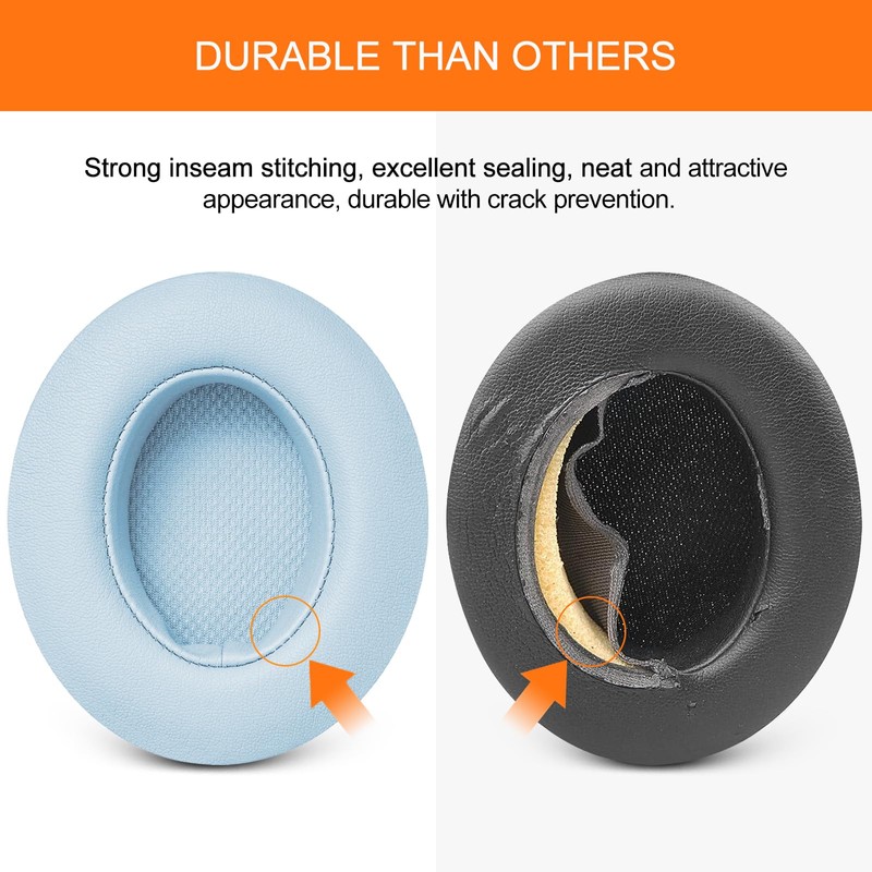 - 【LONGER SERVICE LIFE】 Our studio ear cups replacement are stitched along the inside seam, making them durable and resistant to cracking. In addition, we have upgraded the 3M adhesive to ensure that the earpads remain stable on the ear piece.