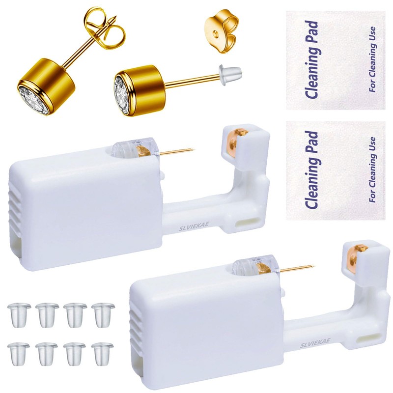 - Ear Piercing Kit Easy to Use - SLVIEKAE Ear Piercing Kit Advanced design, simple operation, as simple as a stapler, Hold both ends of the piercing gun, align the tip of the stud with the mark on the ear, then press quickly. Release your hand after hearing a "click" sound, and the needle tip will enter the ear, and the ear piercing is completed
