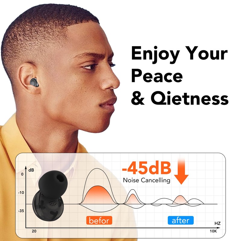 - 45dB Deep Noise Cancellation: The ear plugs for sleep feature the third-generation acoustic filter and high-density sound-absorbing materials, processing noise 58,961 times per second. They can achieve a noise cancellation depth of up to 45dB and eliminate 95% of low-frequency noise. In laboratory tests, 90% of users who wore them continuously for 14 days reported significantly faster sleep onset and improved concentration.