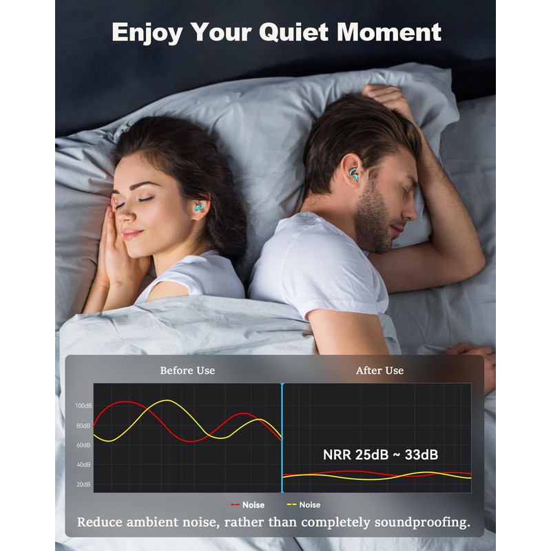 • Effective Noise Reduction: The ear plugs noise reduction have different noise-cancelling effects in different scenes (NRR 25dB to 33dB),soften the sound source and reduce noise while preserving the sound clarity and sharpness. These comfortable ear plugs for sleeping help preserve your hearing and provide you with some peace in a noisy world.