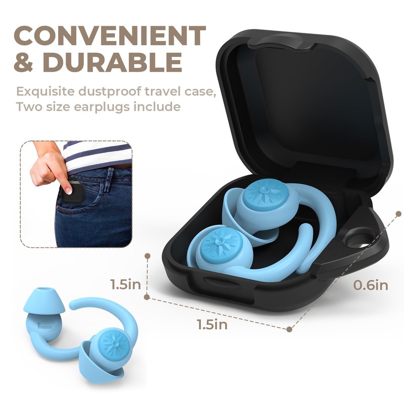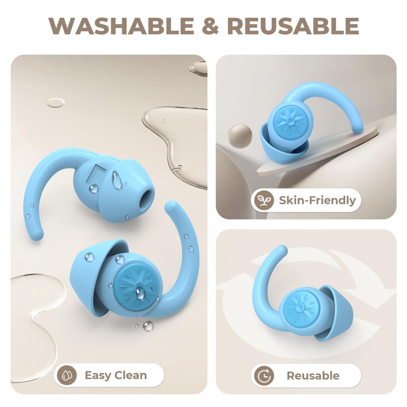 Experience a new level of quiet with our reusable silicone ear plugs for sleeping. Whether you’re a light sleeper, side sleeper, frequent traveler, or someone seeking relief from snoring and background noise, our soft earplugs are designed to deliver up to -33dB noise reduction without sacrificing comfort. Crafted from high-quality, skin-friendly silicone, our noise cancelling ear plugs fit gently and securely in the ear canal without deep insertion. The ergonomic design includes soft earhook wings to keep them in place throughout the night—perfect for side sleepers who struggle with bulky or falling earplugs. Each set includes two sizes (S and L) to fit small and large ear canals, making them suitable for both men and women. Washable and reusable, they are the perfect alternative to disposable foam ear plugs, offering long-lasting ear protection for sleeping, travel, meditation, studying, or even concerts. If you're tired of restless nights, airplane pressure, or constant distractions, our sleeping ear plugs provide a peaceful escape wherever life takes you. Enjoy better sleep, clearer focus, and reliable noise blocking—day or night.