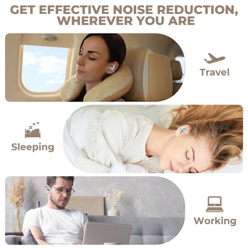 • Superior Noise Reduction: Our ear plugs are expertly designed to block out snoring, airplane noise, and background chatter. These noise cancelling ear plugs deliver up to 33dB of quiet, helping you focus or sleep in even the noisiest environments