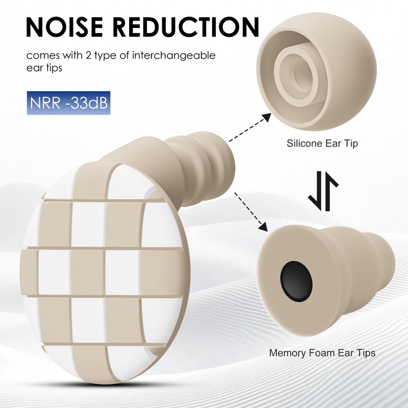 • Package Contents:The earplugs noise cancelling package includes 1 pairs sleeping earplugs, 3 sets of soft silicone ear tips (S-L), 2 sets of memory foam ear tips (S/L) and 1 handy carry case. Our silicone earplugs are durable and reusable, providing a quiet world in your life.
