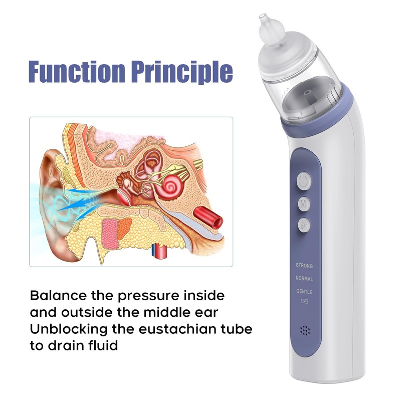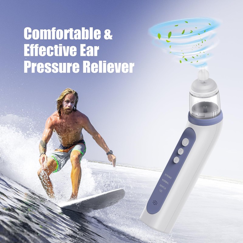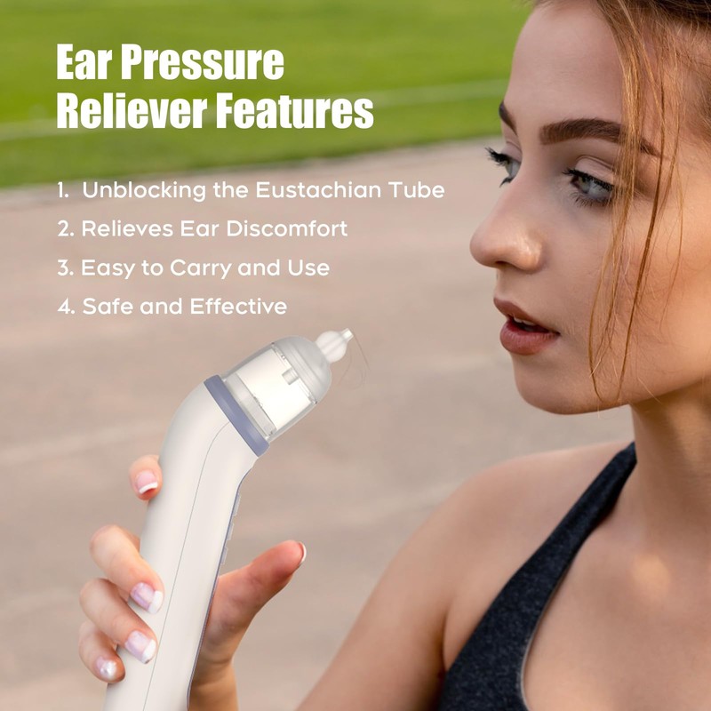 - Ear Relief:Our Ear Relief device relieves negative pressure and discomfort in the ear by pushing a steady stream of air into the nasal passages and quickly opening the eustachian tube during swallowing