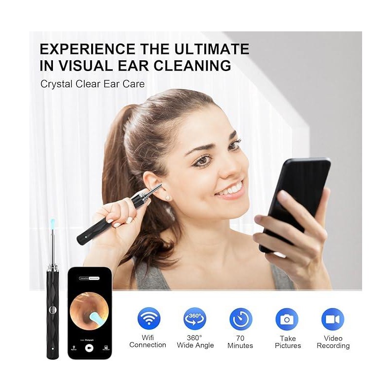 Ear Wax Removal, Ear Cleaner with Camera, Wireless Intelligent Visual Ear Picker, Earwax Removal Tool, 1080P HD Otoscope with 6 LED Lights, Ear Cleaner for iOS & Android (Black):_black