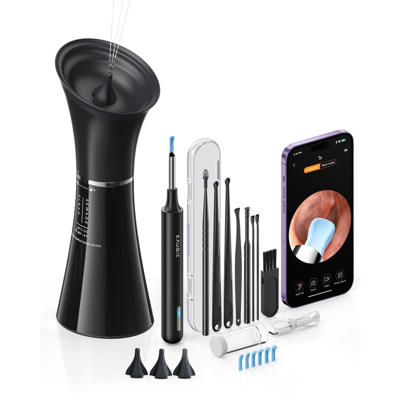 - COMPLETE EAR CARE SOLUTION: The Kaugic ear wax removal kit combines an electric ear cleaner and ear camera for a seamless ear cleaning experience; the ear camera first inspects the ear canal to detect wax buildup; then, the ear cleaner gently flushes out ear wax, and the camera ensures thorough cleaning after