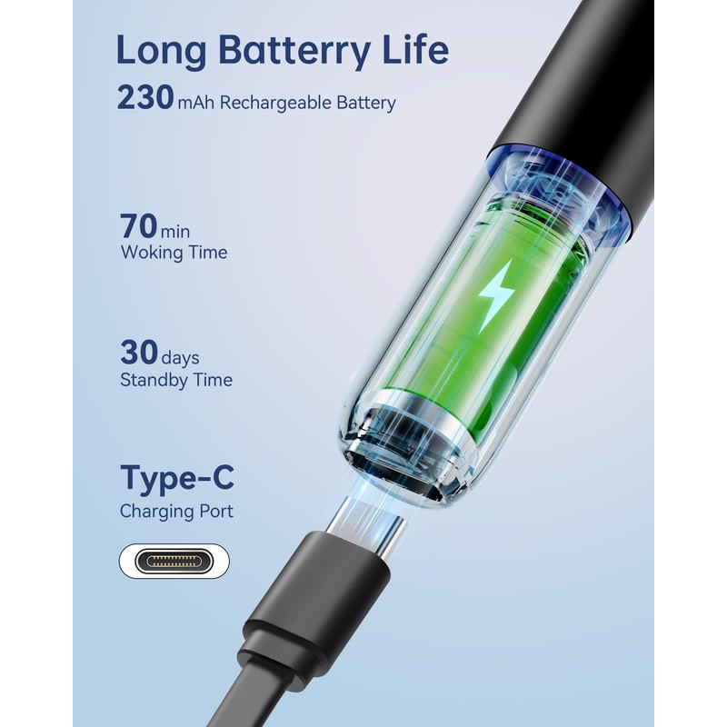 - Portable and Long-Lasting: Light weight and easy to carry, this ear cleaner features a built-in 230mAh rechargeable battery, providing 70 minutes of use; Tips: Follow the charging instructions in the manual to prevent overcharging/discharge