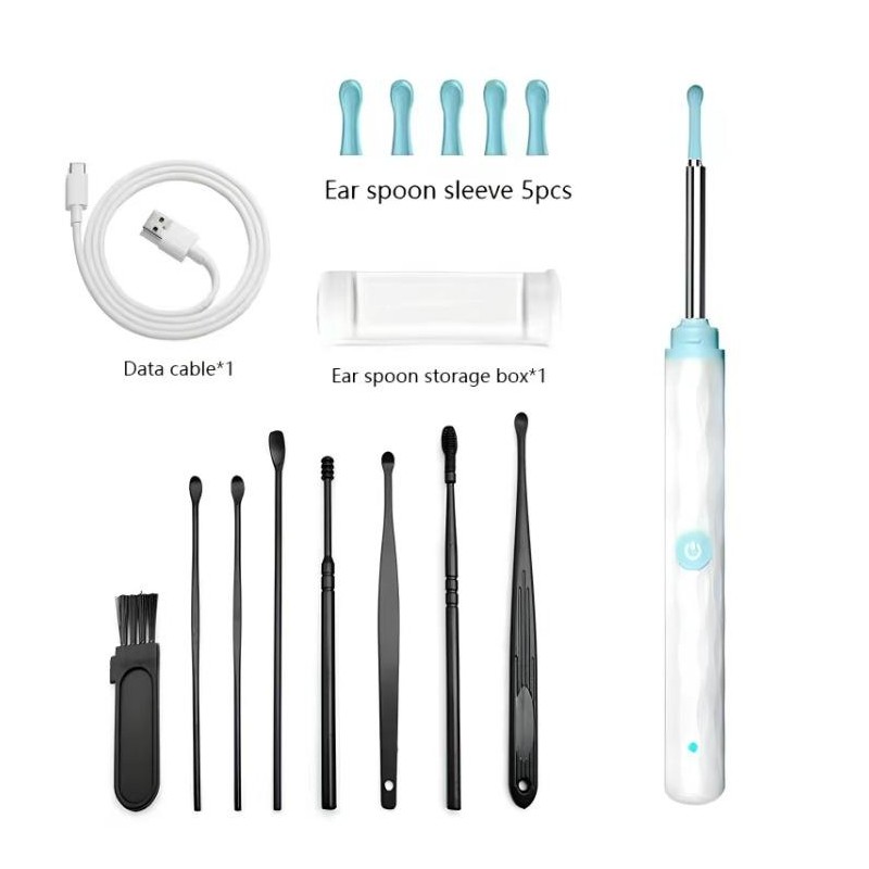 Ear Wax Removal Tool with Camera & Light - 7Counts Ear Cleaning Kit for iOS & Android, Includes 6 Ear Spoons, Safe and Precise Earwax Remover (Black):_White