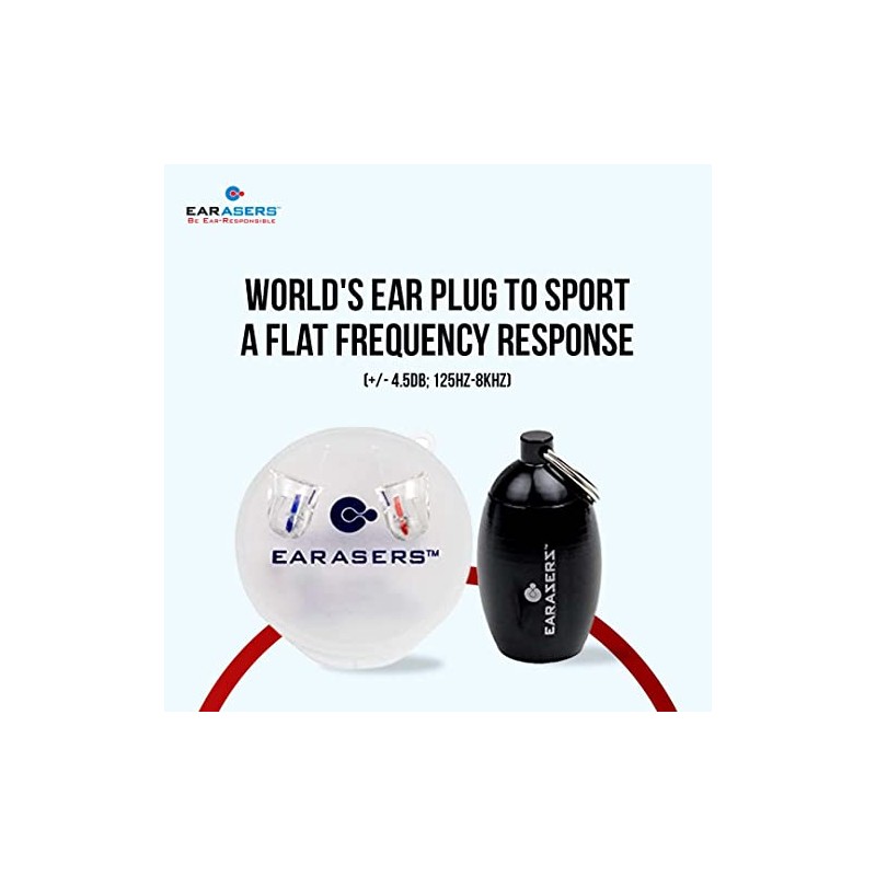 - Premium Hearing Protection - EARasers High Fidelity Earplugs reduce damaging decibel levels to protect your ears in noisy areas without hurting sound quality. These are designed to block harmful noise while retaining sound quality; whether playing the guitar, drums or visiting a music festival musicians have to be able to focus on the different layers of instrumentation. Kill the noise hear the voice.
