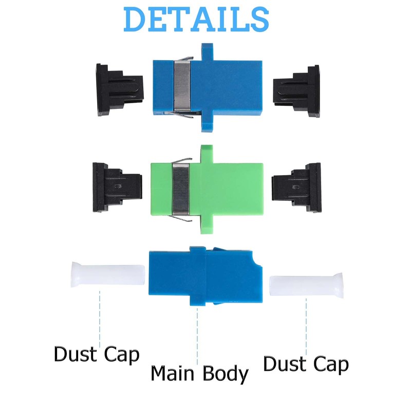 - Fiber Optic Coupler Kit: This kit includes 50 pieces fiber optic adpter- SC/APC, SC/UPC, LC, ST, FC. 10 pcs of each of the five types.