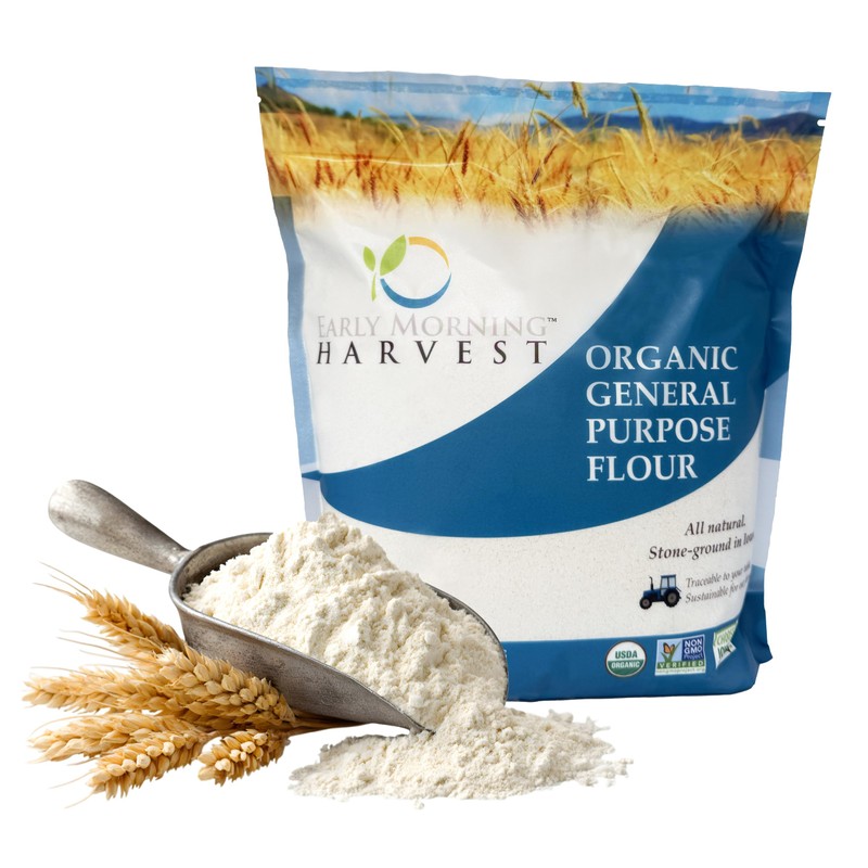 Early Morning Harvest Organic General Purpose Flour - Made from Non-GMO Whole Wheat - Stone Ground All Purpose Flour for Baking and Cooking, Whole Grain, Unbleached, Certified Organic GMO free