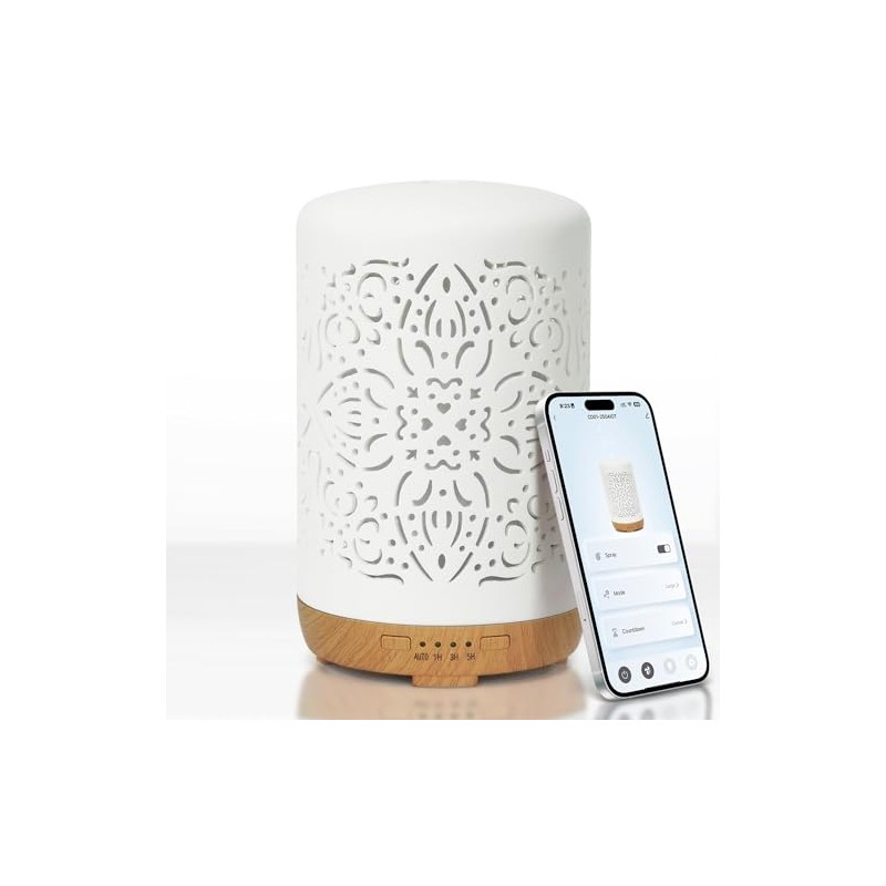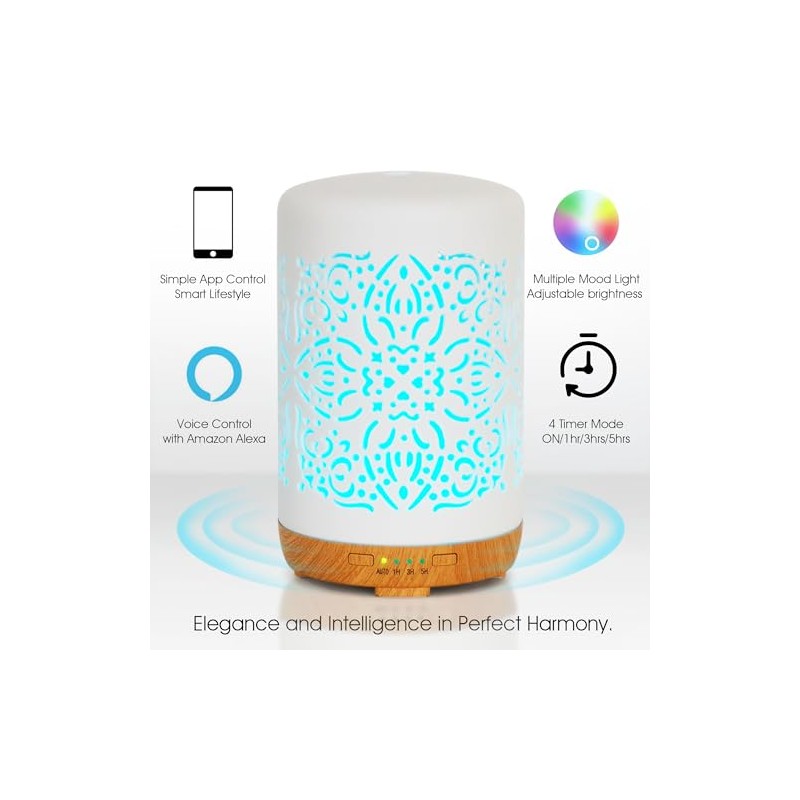 Earnest Living Earnest Living Smart Wifi Essential Oil Diffuser White Ceramic Diffuser 250 ml with Alexa Google Home App Phone Control LED and Auto Off Office Humidifier Aromatherapy Diffusers for Essential Oils