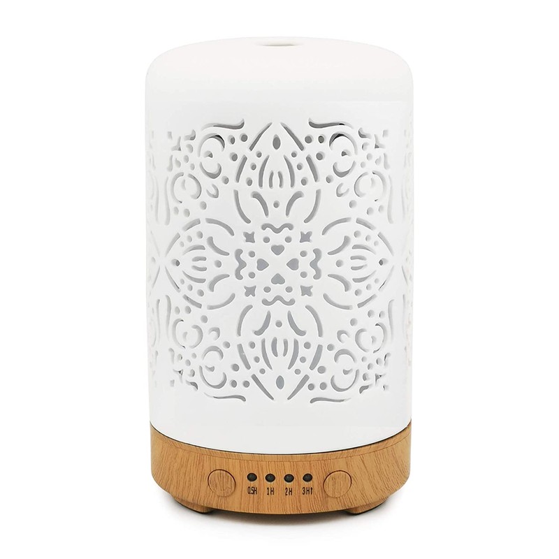 Earnest Living Essential Oil Diffuser White Ceramic Diffuser 100 ml Timers Night Lights and Auto Off Function Home Office Humidifier Aromatherapy Diffusers for Essential Oils