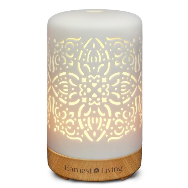 Earnest Living Essential Oil Diffuser White Ceramic Diffuser 100 ml Timers Night Lights and Auto Off Function Home Office Humidifier Aromatherapy Diffusers for Essential Oils