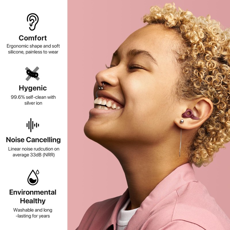 - HYPOALLERGENIC& OPTIMAL COMFORT: Great for people who have never worn earplugs before or the people'ear particularly sensitive, these sleeping ear plugs noise cancelling are made of soft silicone with medical grade silver ions.effectively preventing ear from itching, eardrum inflammation,sweating and irritating. Whizzer Earplugs reduce pressure on the ear canal so you'll wake up pain-f ree.