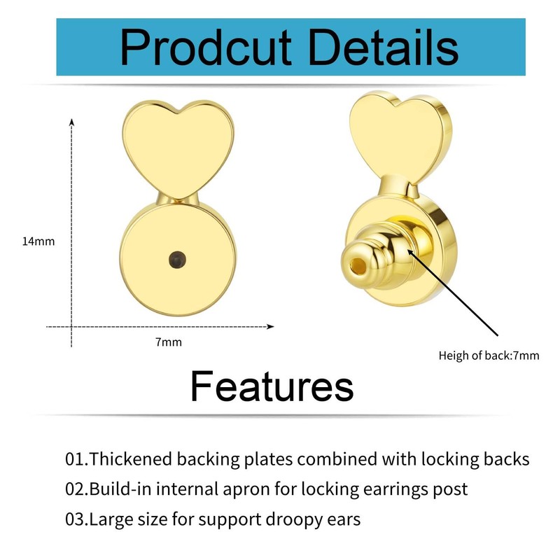- Versatile & Stylish for Any Occasion – Whether you're heading to brunch, the office, or a formal event, our Heart Earring Lifter Backs blend seamlessly with all types of earrings. Their chic design enhances any jewelry collection, giving your earrings the support they need while elevating your look with effortless elegance