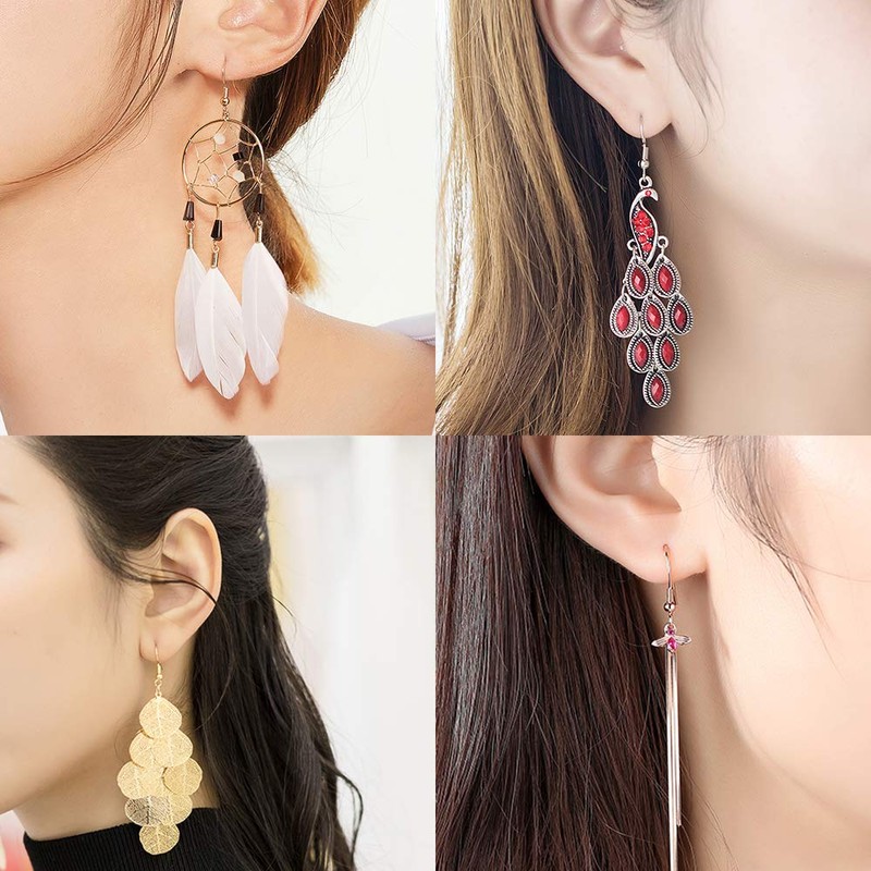 - SAFE AND COMFORTABLE - The material of ear hooks is hypoallergenic smooth stainless steel, and earring backings is soft silicone, more safe and comfortable to wear, please wipe it with alcohol before wearing it