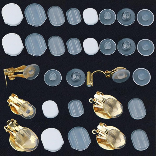 Earring Pads, Multi Style, 80 Pieces, 8 Sizes, TPE Material, Comfort Cushions for Clip-on Earrings, Clear, White, Milky (Group 1)