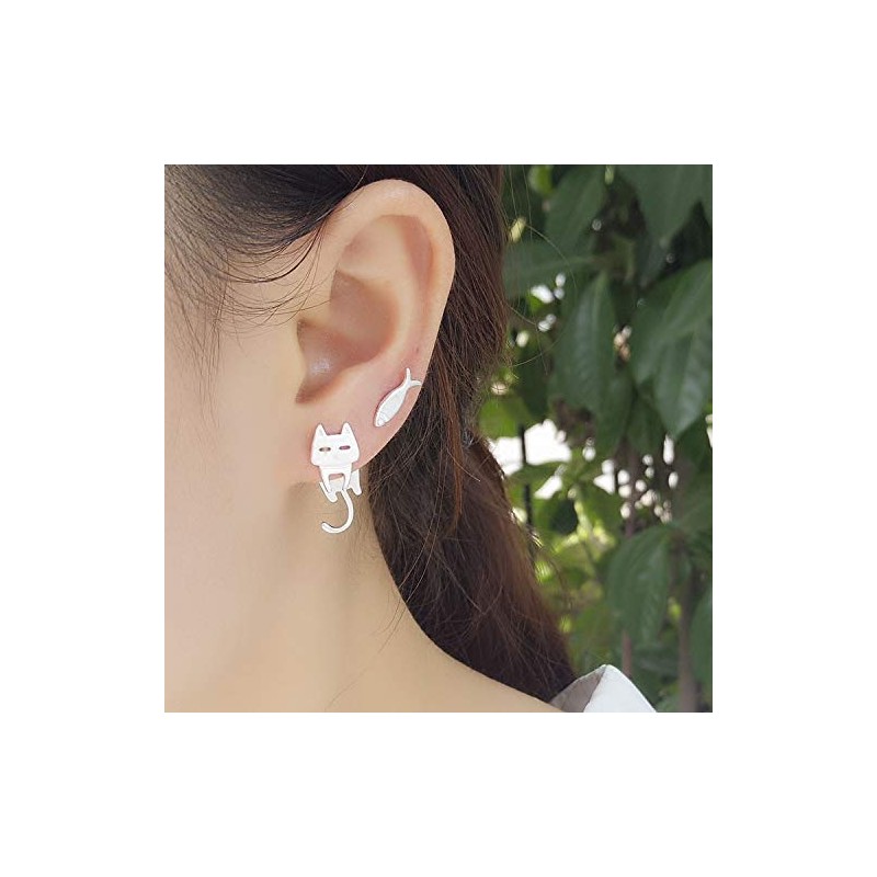 Earrings 925 Sterling Silver Cat Fish Stud Earrings For Women Gift Hypoallergenic Sterling-silver-jewelry Prevent Allergy Silver