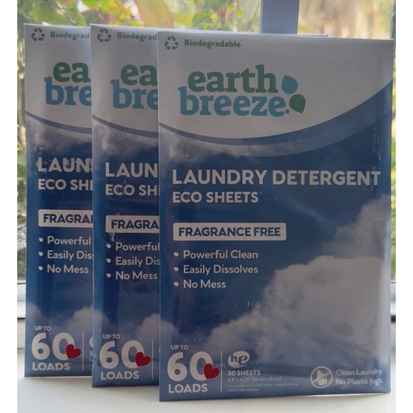 Earth Breeze 3 Packs ( 3X60 =180 Loads ) Fragrance Free Laundry Detergent ECO Sheets