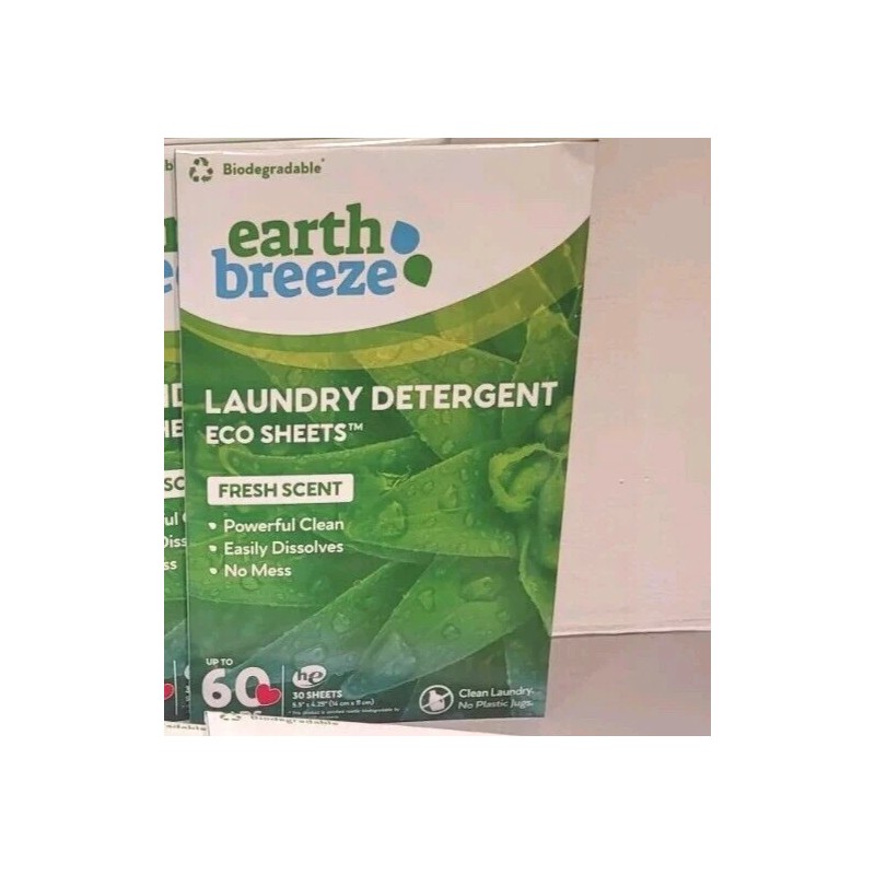 Earth Breeze Laundry Detergent Sheets Fresh Scent 1 X 30 Total 60 Loads No Jugs