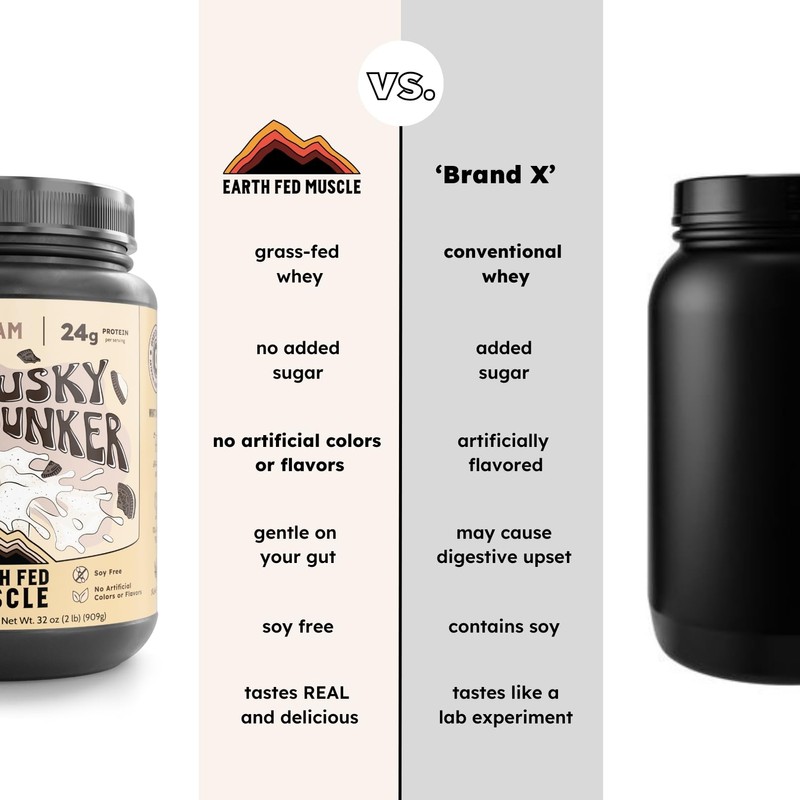 Earth Fed Muscle Husky Dunker Cookies N' Cream Truly Grass Fed Whey Protein Powder - No Artificial Ingredients, Soy Free, Non-GMO and Hormone Free (2 Pound, 27 Servings, Cookies n' Cream)