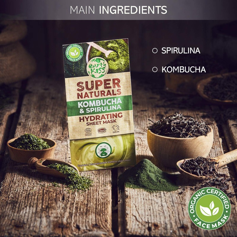 Earth Kiss Super Naturals Hydrating Kombucha and Spirulina Sheet Mask to Minimise the Appearance of Pores, Tone your Complexion and Hydrate Thirsty Skin Single Sachet