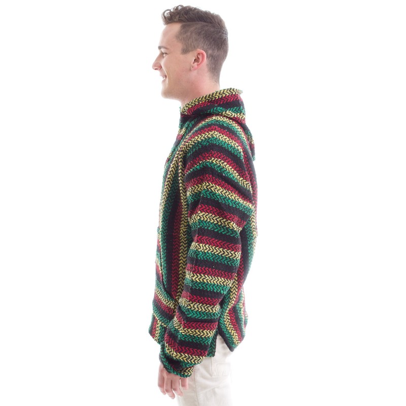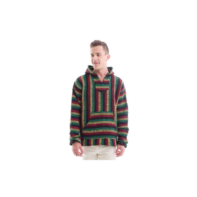 - Men's or Women's Rasta Baja Woven Hoodie with Pouch Pocket