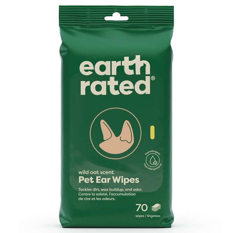 Earth Rated Pet Ear Wipes, Hypoallergenic Cleaner for Dogs & Cats Ears to Remove Dirt and Wax Build Up, Wild Oat Scent, 70 Count | Earth Rated